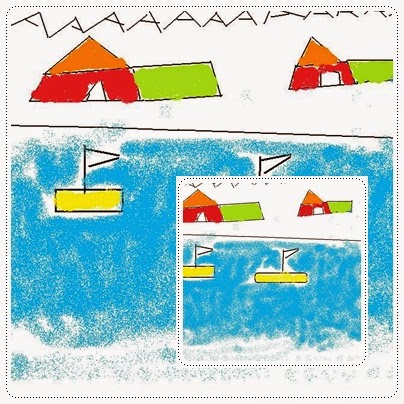 Como os prometí en la videoconferencia hice una postal. Me gusta mucho el mar y he intentado enseñaros en esta postal todo lo que me gusta. La pesca, las olas...